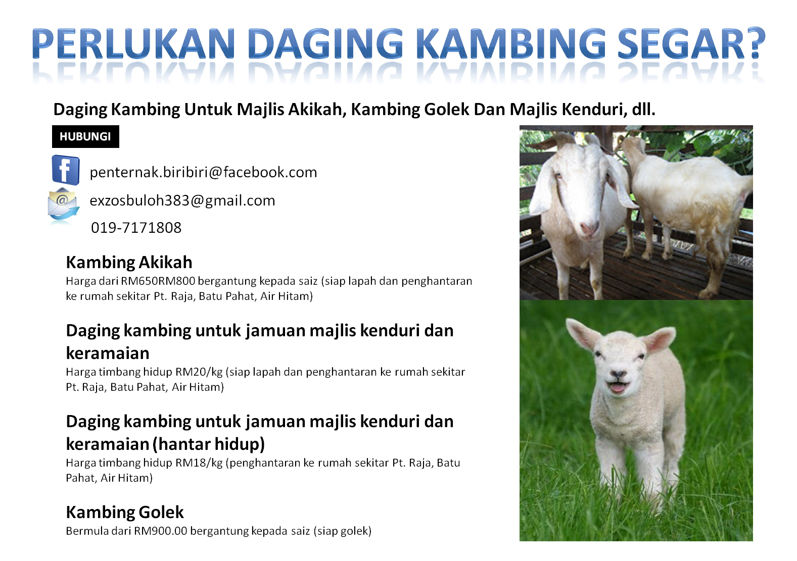 Selanjutnya Arti mimpi tentang membeli kambing di mimpikan oleh Wanita, penafsirannya setelah jeda berikut ini: Jika Wanita yang sudah menikah bermimpi tentang membeli kambing, maka arti mimpinya adalah : Jika saat ini anda selalu merasa gagal atau selalu mendapat penolakan, sebaiknya ambil tindakan positif. jangan beranggapan terlalu buruk. - Setiap paketnya, mewakili 1 kambing. - Aqiqah Anak Laki-laki ambil 2 paket. - Menu dapat dicustom sesuai selera pemesan. - Harga tertera, adalah harga yang dibayar tanpa biaya tambahan tersembuyi.